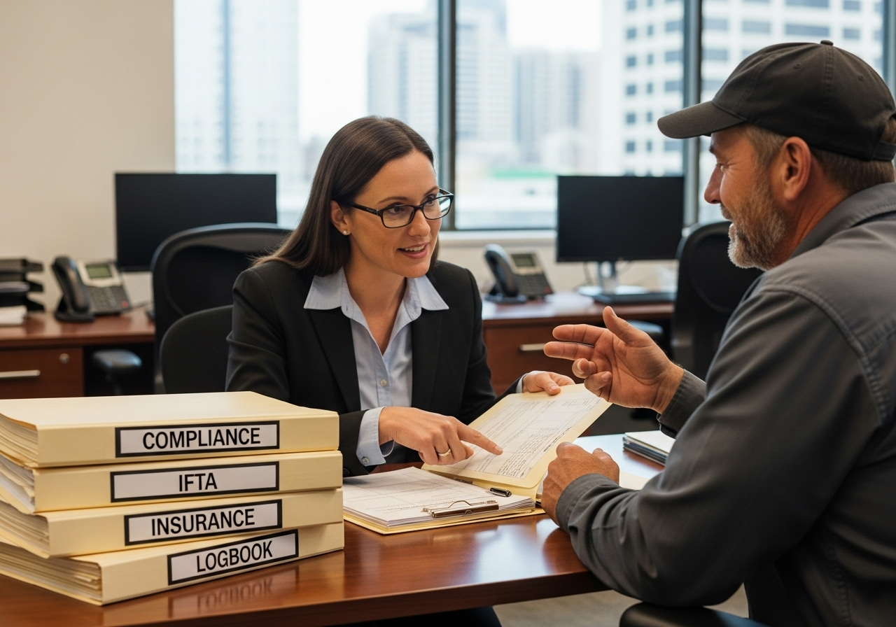Contact us to get started. We’ll walk you through the setup and help you submit everything you need — including MC authority, insurance, IFTA, and logbook details.
